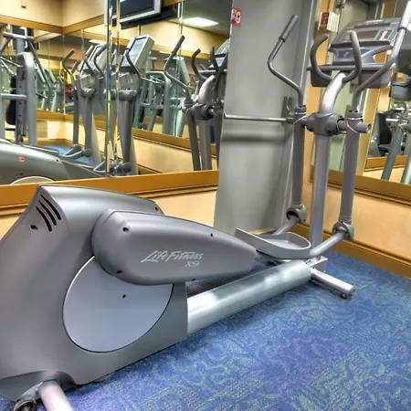 Guests can work out in a gym.